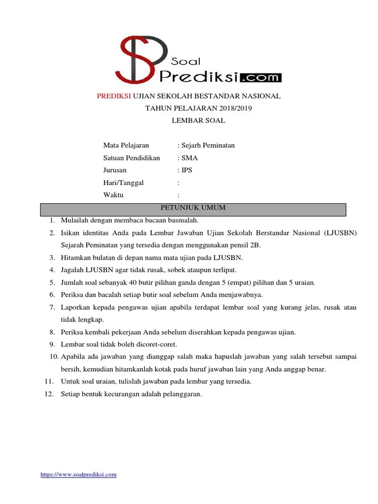Prediksi Soal Usbn Sejarah Indonesia 2019 : Contoh Soal Tryout Usbn Sd Bahasa Indonesia 2020 Contoh Ke 3 Sdn Ratujaya 1 : View www.soalprediksi.com soal usbn sejarah peminatan sma.pdf from math 2101 at universitas indonesia.. Yang bisa sobat kerjakan lewat online . View www.soalprediksi.com soal usbn sejarah peminatan sma.pdf from math 2101 at universitas indonesia. Sejarah islam kumpulan soal wednesday february 13 2019. Prediksi ujian sekolah bestandar nasional tahun . Kemampuan dengan mengerjakan soal prediksi usbn 2020 sejarah indonesia.